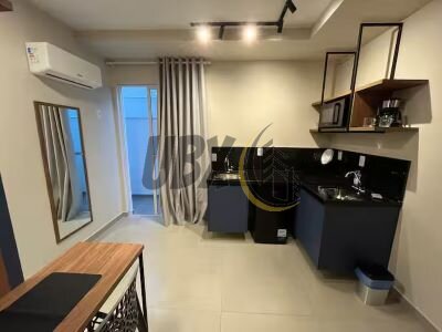 01 banheiro. 2 janelas, bancadas em granito, ar condicionado apartamento todo mobiliado com armários.